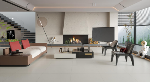 ??冠珠陶瓷依托強大的生產實力,推出了多款高還原度的天然石材紋理瓷磚。產品花色豐富,搭配靈活,尤其適合面積較大的客廳布局,能夠通過連紋設計實現無縫視覺延伸。